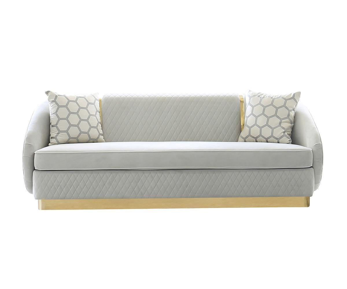 - The gold stainless steel base elevates the rich aesthetic of the sofa